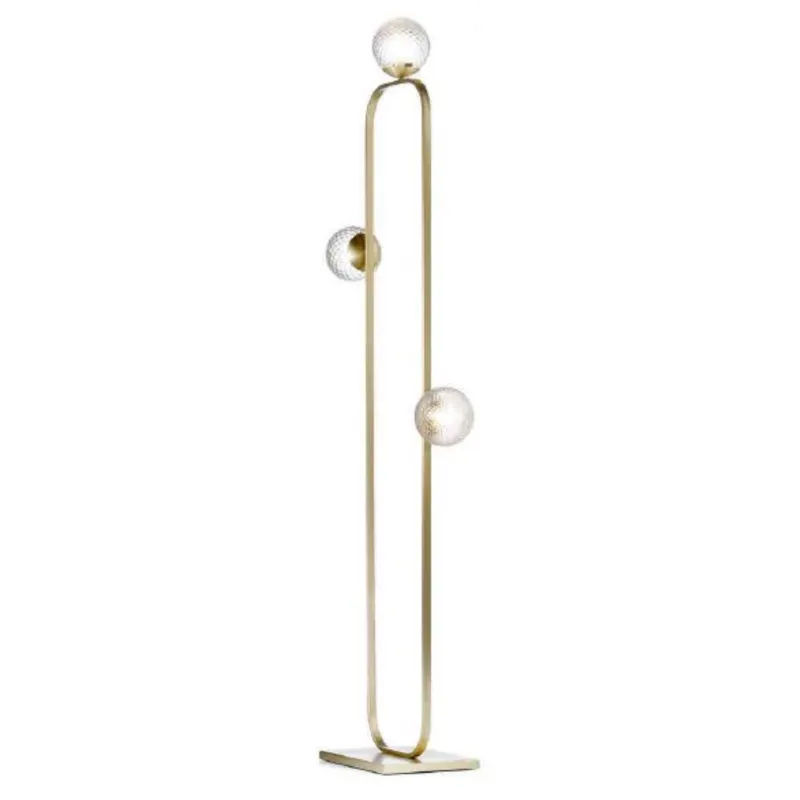 W jadalni bądź w salonie dodatkowym artystycznym akcentem może być lampa stojąca o prostokątnej formie. Prosta, nowoczesna konstrukcja, a zarazem tradycyjne szklane kule są świetnym przykładem łączenia przez włoskich rzemieślników nowoczesności z tradycją. Trzon lampy stanowi mosiężna rurka, którą uzupełniają antyczne złoto i przejrzyste szkło murano.