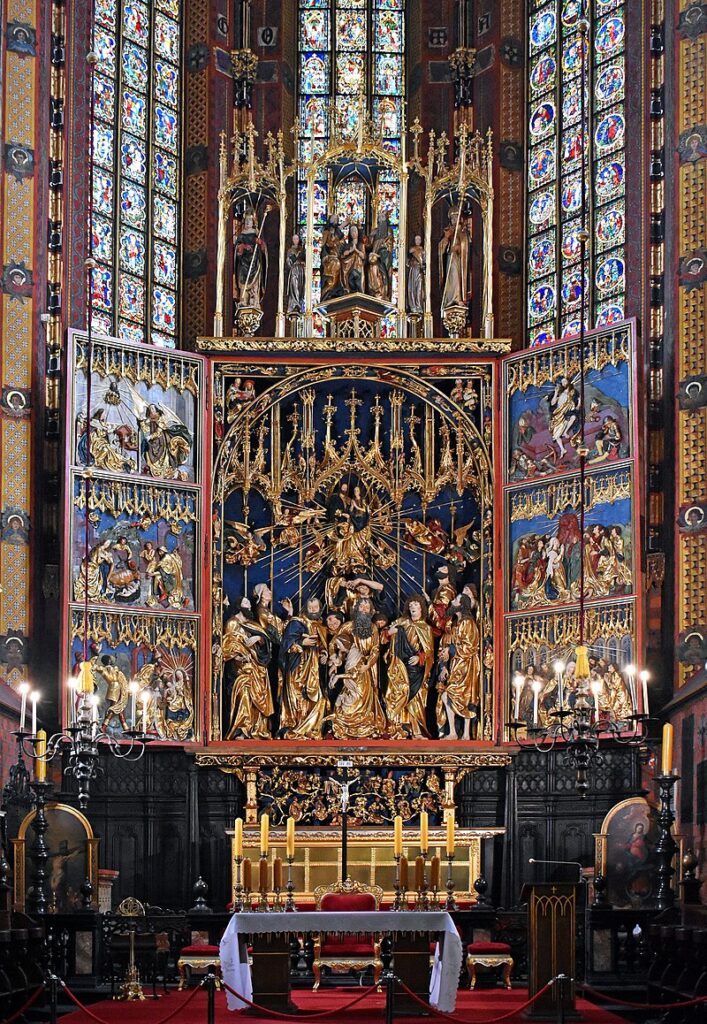 Powstał w latach 1477-1489 i jest największą w Europie gotycką nastawą ołtarzową. Ma trzynaście metrów wysokości i jedenaście metrów szerokości. W ołtarzu jest ponad dwieście figur, które wyrzeźbiono z litych kloców lipowych. Natomiast jego konstrukcję wykonano w drewnie dębowym, a tło w modrzewiu. Ołtarz znajduje się w kościele Mariackim w Krakowie.